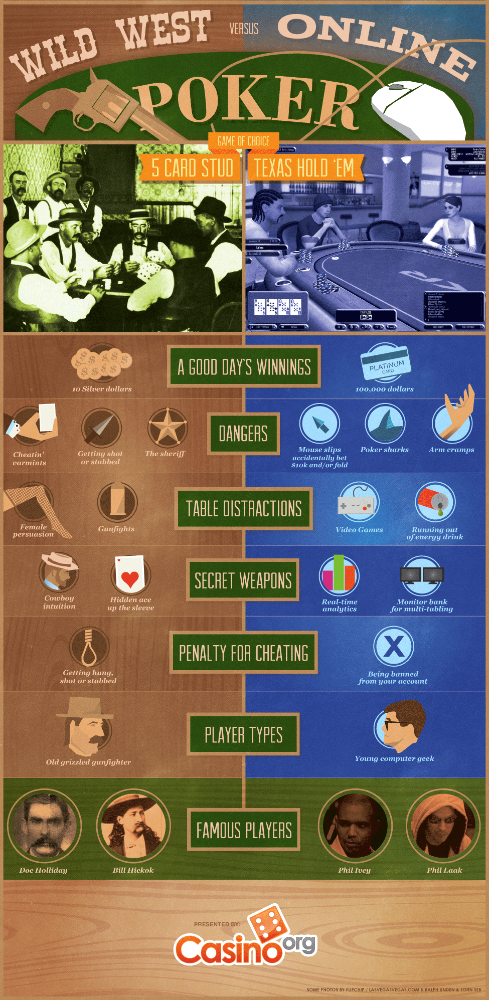 Late night poker watchers and weekly players will greatly appreciate this. Casino.org’s latest infographic compares and contrasts each method of playing, whether you go old fashioned or play through your online avatar.